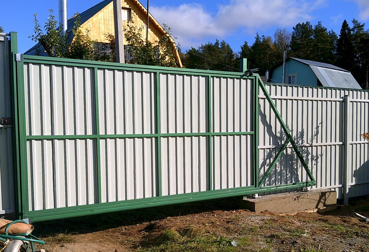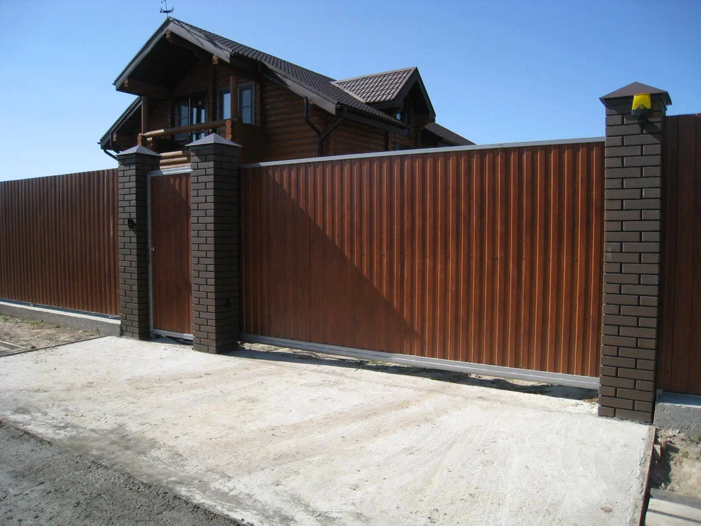 Откатные ворота из профнастила с встроенной калиткой и автоматикой